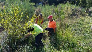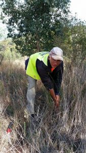 It was a case of BYO brush-cutters, walking tracks were cleared and gorse, broom and blackberry and re-emerging woody weed seedlings got the chop. Goodbye to all the willow suckers, these were hand removed by cutting then painting. Walkers on the Hill will be pleased to know that 5 previously undiscovered wasp nests were treated as well. After the rain at the weekend, the weather on the day was perfect, blue sky and a light breeze made it a pleasure to be spending time with such a keen and happy bunch of volunteers. And an extra bonus was that there was enough time to set up a site for a future planting with the Daylesford Secondary College. Thanks to team leader Daryl and his inspirational team!