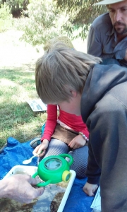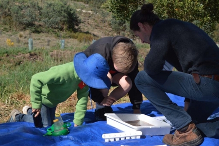 Kids Teaching Kids is an education model that uses local environmental issues as a theme for learning and such a program involving the Dharma school, Yandoit and Bullarto Primary Schools was held on Cornish Hill on Wednesday 28th October 2015. Students from Bullarto Primary school were the teachers. Guided by Environmental educator Nicole Howie, the students ran a workshop involving water quality testing, exploring the underwater world of macroinvertebrates and studying habitat of birds commonly found on Cornish Hill. The event was funded by both North Central Catchment Management Authority and the Department of Environment Land Water and Planning.