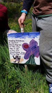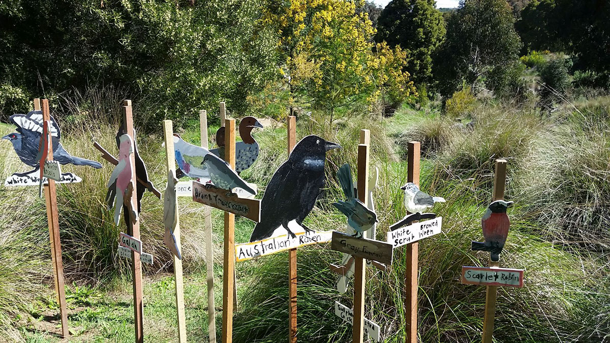 - Making a bird. Conducted by Jodie Goldring and also with permission from Bugblitz. By studying and observing photographs and observing the structure of each bird, students made their own bird which was displayed on the Hill before each bird was returned to their schools.
