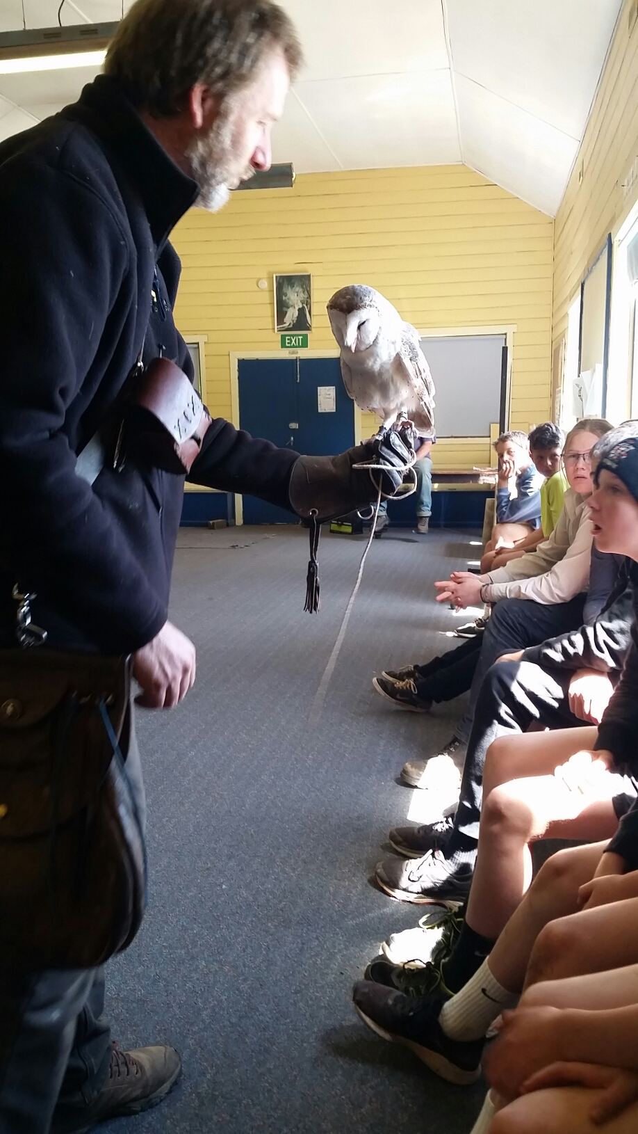 - Finally, after lunch the students and staff walk to the Community Park where we met Martin Scuffins from Leigh Valley Hawk and Owl brought raptor birds and presented the final session.